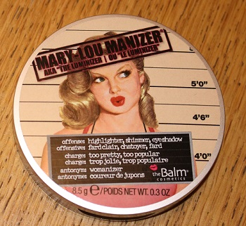 Today I want to talk about a new product, The Mary Lou-manizer from The Balm. It has taken the country by storm. At first I thought this was one of those super hyped products that couldn’t hold up when it came down to it. Then I decided to just go for it and try it out. I’ve been testing it now for about 3 weeks and I have come to realize that this product is not hyped up, it’s just really good. All the products from The Balm come in a 50’s styled packaging with a sassy name which is completely unique. And that goes for the Mary Lou-manizer as well. It comes in a really cute silver compact with supposedly Mary Lou on the cover.