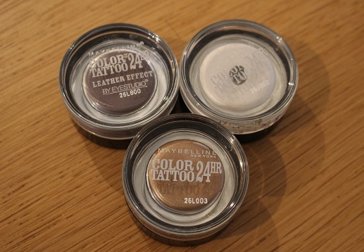 To go deeper into the fall trend about metallic eye shadows I want to talk about yet another Maybelline product (no I’m not sponsored). The Color Tattoo 24HR eyeshadows. These come in a variation of shades, matte, metallic or shiny. I’m going to show you my favourite three colours and tell you a bit about them. They are all beautiful on their own but they are also a great base for eye shadow instead of a primer since they are creamy and grab well to the powder shadows.